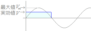 電圧の最大値をVm,実効値をVで表すと