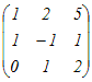 行列a12=−の余因子はA12=−5 a21=−の余因子はA21=−(−1)=1 a22=−の余因子はA22=4 の転置行列が余因子行列![]() これをdet(A)=4 · 2−5·(−1)=13で割ると …(答) |